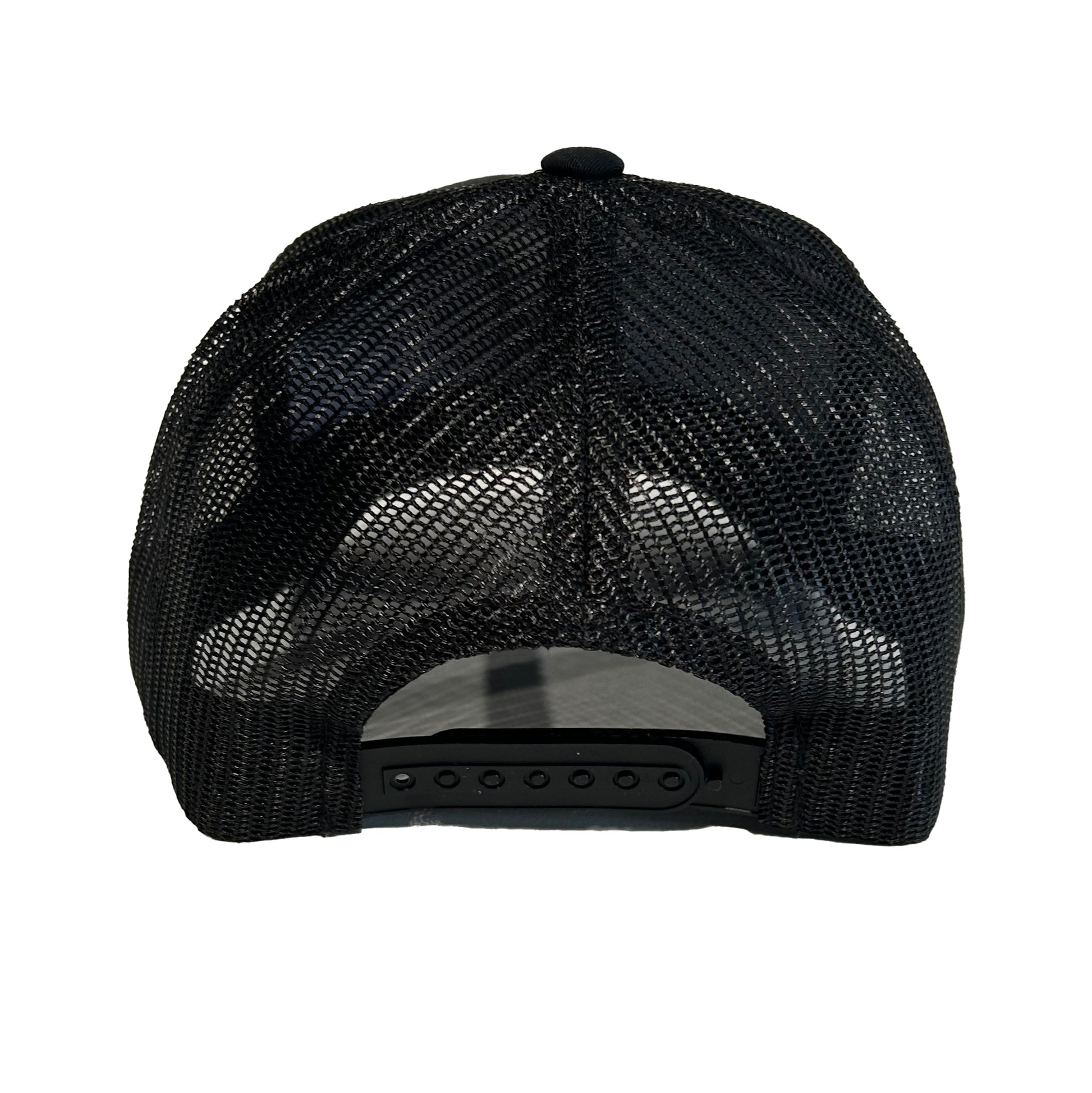 Black trucker hat with RRP logo embroidered on front. One size fits all.
